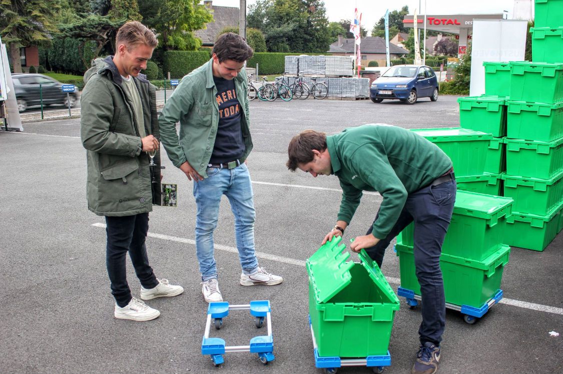 Stack and nest moving crates with dolly pictures shared by dear customer from Belgium